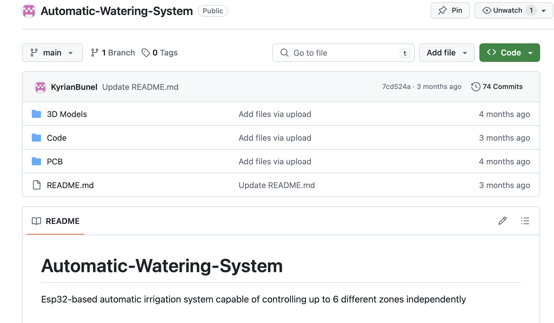 Il s'agit de mon projet personnel le plus complexe et complet à l'heure actuelle avec une grande capacité à évoluer. Ce projet à débuté car mes parents souhaitait un système d'arrosage automatisé pour leurs jardin, j'ai alors été surpris par les prix des contrôleurs d'arrosage qui disposait pourtant de fonctions simples. J'ai donc proposer de concevoir équivalent mais en ajoutant des fonctionnalisés afin de correspondre au maximum à leurs besoins.Â