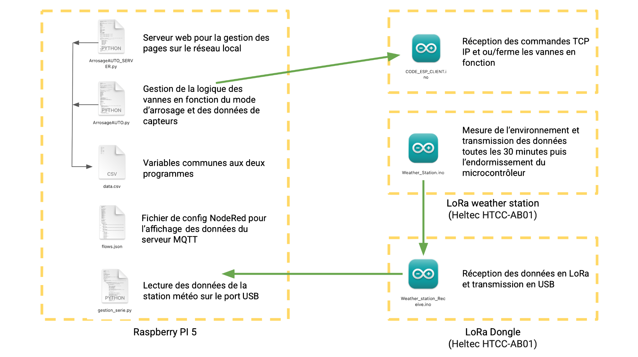 Le schéma ci-dessous explicite les différentes interactions Software au sein du système Arrosage Automatique :