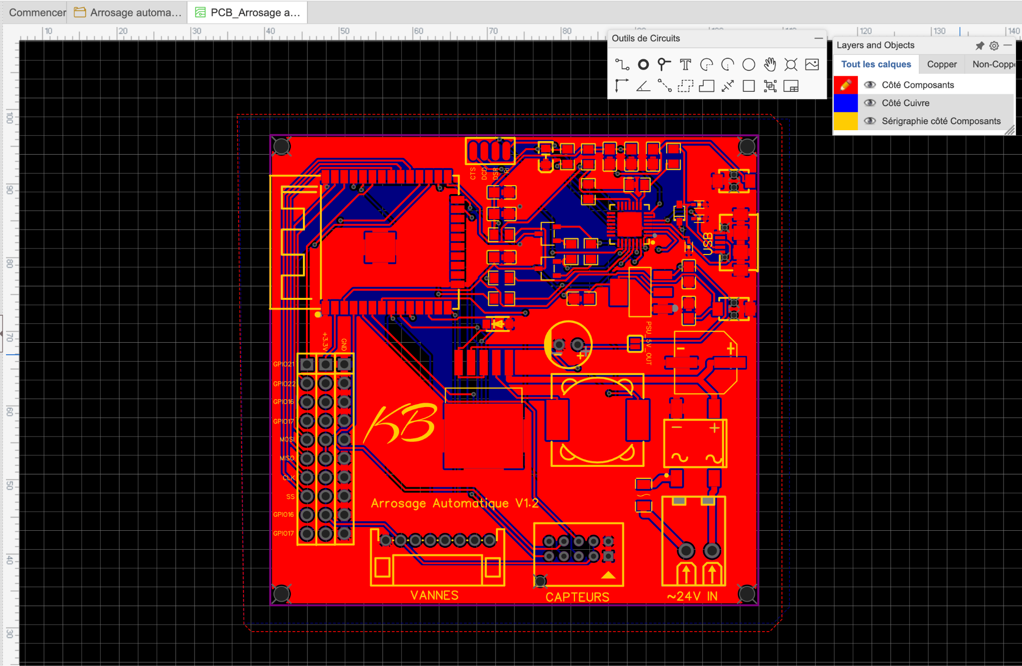 Une fois que le prototype à été validé, j'ai ensuite réalisé un PCB basé sur un esp32 devkit v4 à l'aide de l'outil gratuit en ligne, EasyEDA