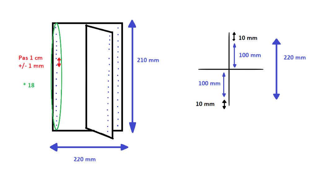 18 spires sont à prévoir donc 18 trous avec un pas d'environ 1 cm (+/- 1 mm) ont été fait.