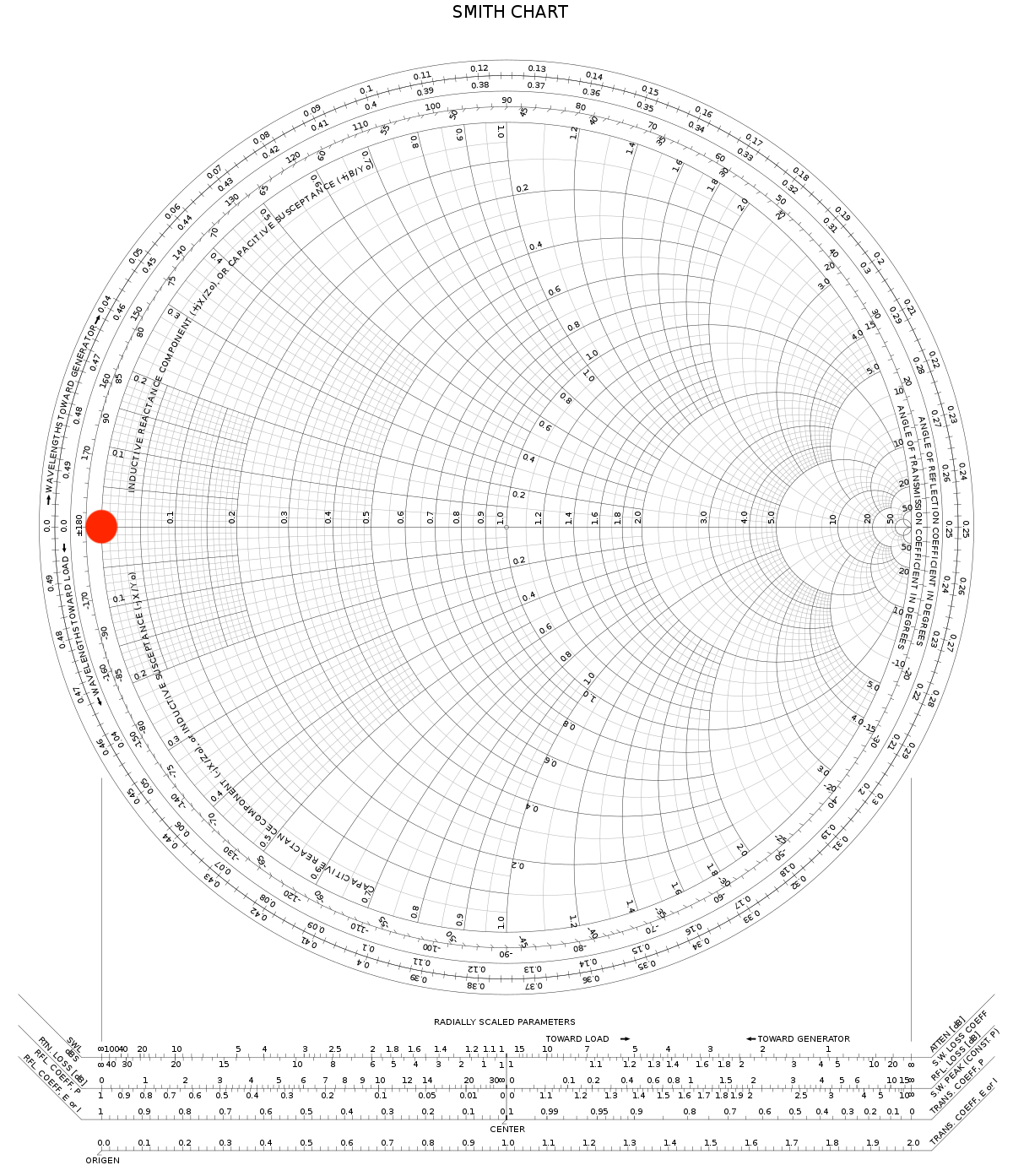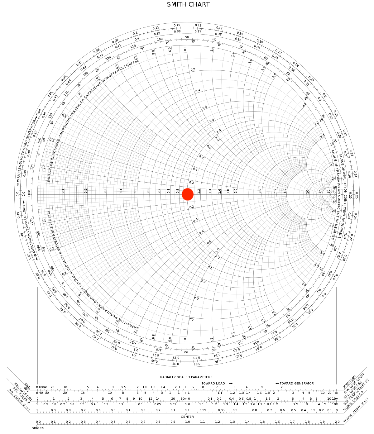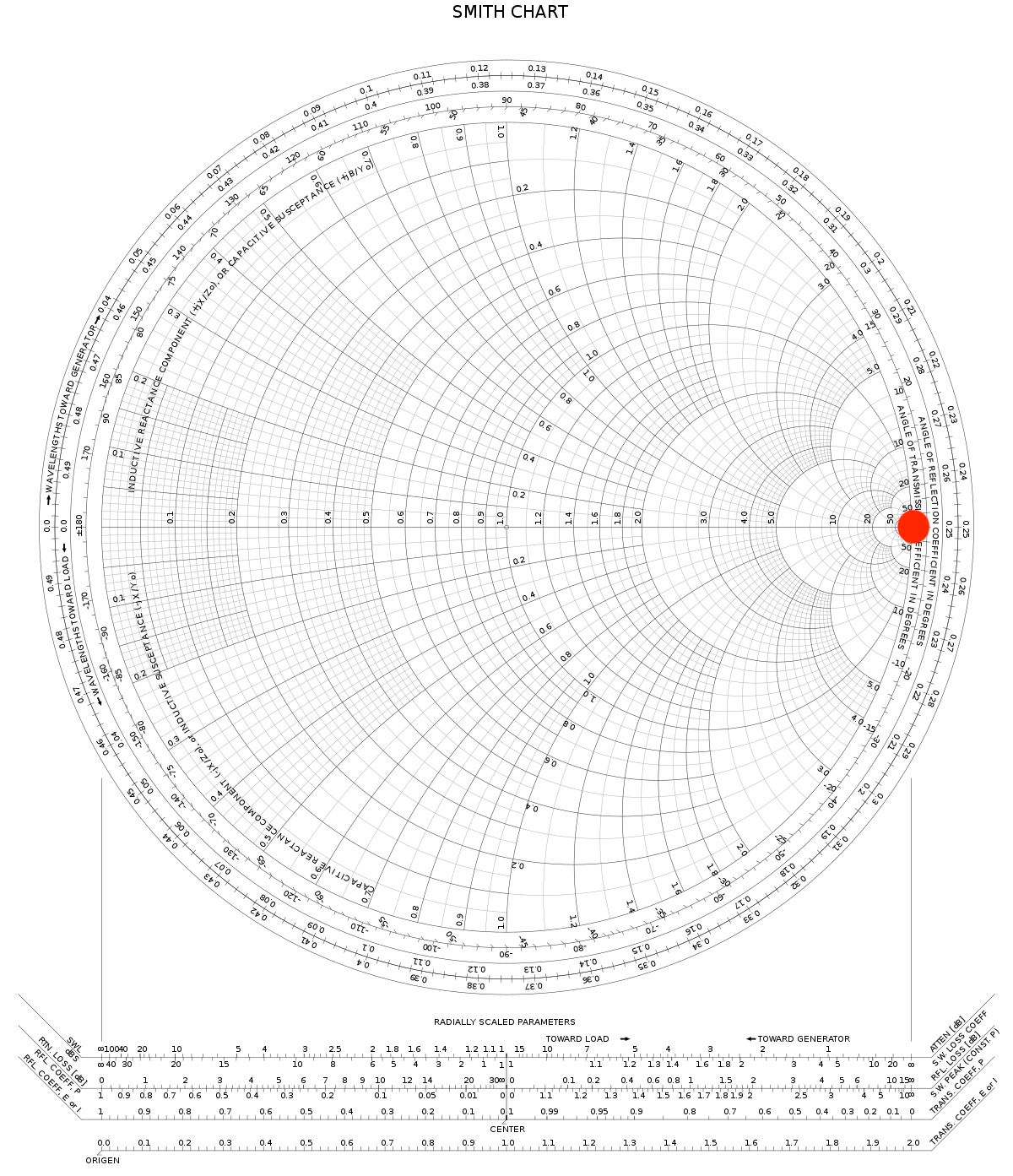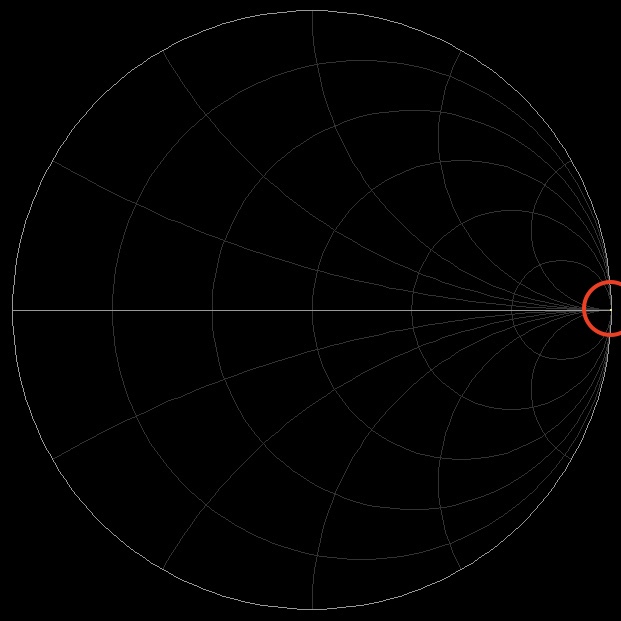 Affichage du coefficient de réflexion sur l'abaque de Smith [FORMAT] → Smith = R+jX