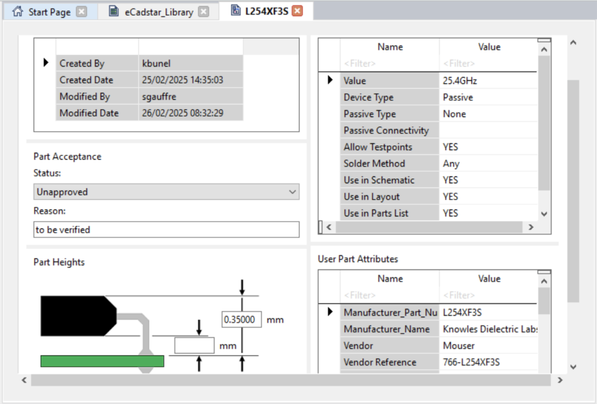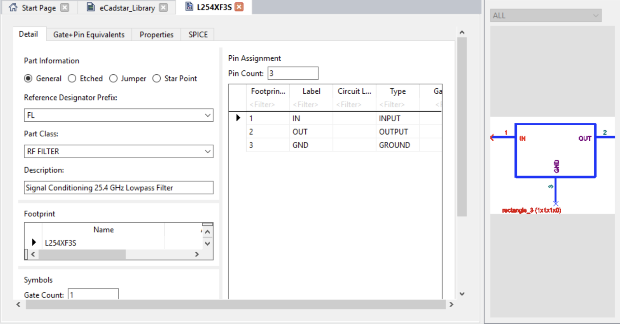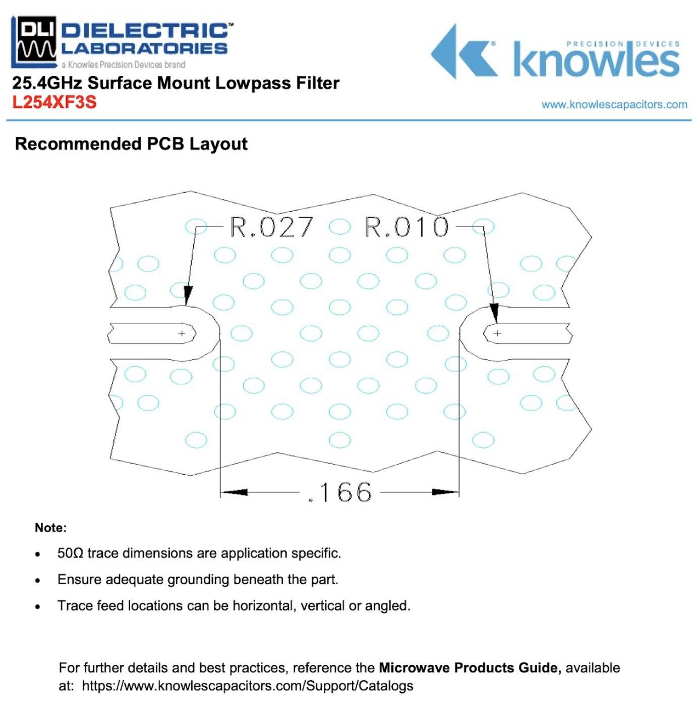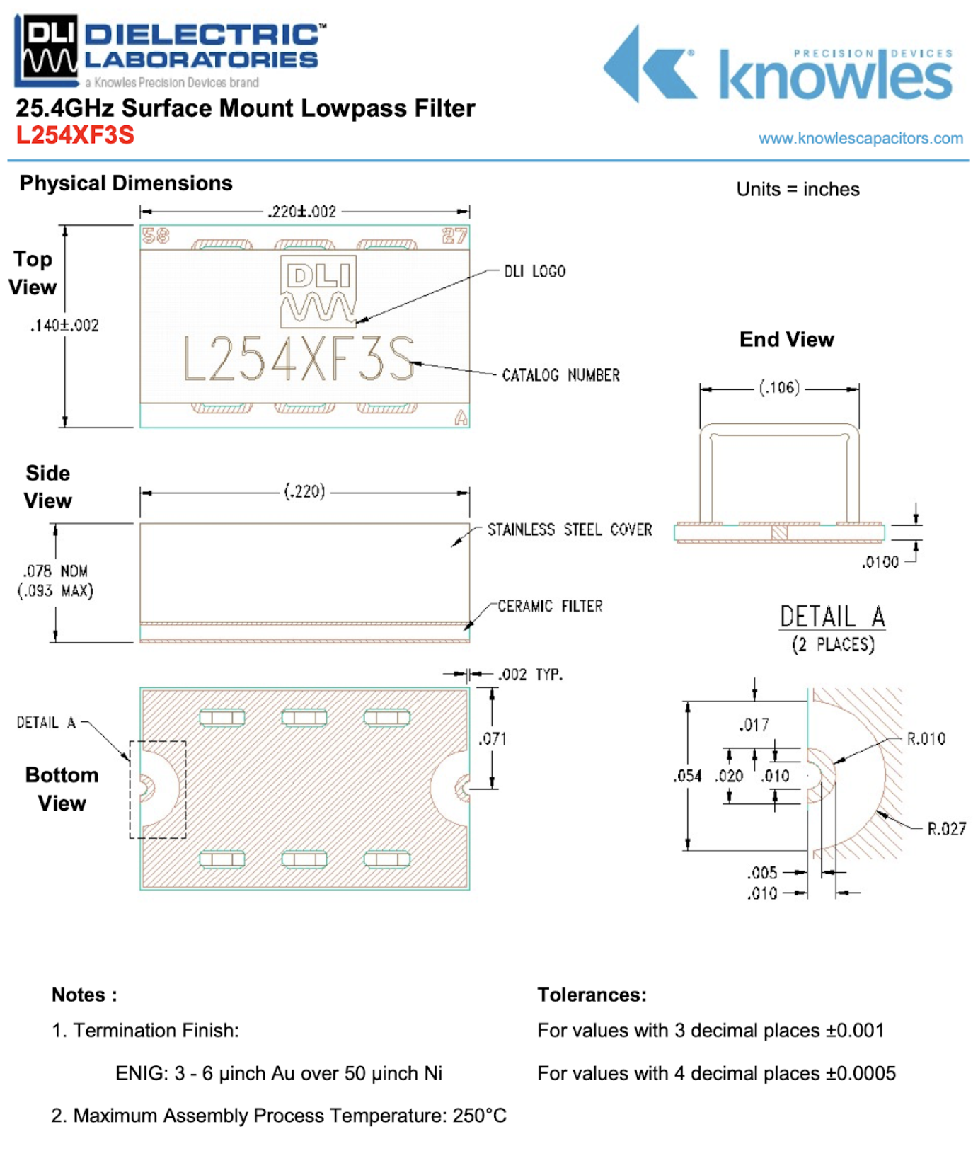 Pour créer le composant à partir de zéro, nous allons donc prendre exemple sur le L254XF3S qui est un filtre passe bas 25,4GHz fabriqué par Knowles Dielectric.