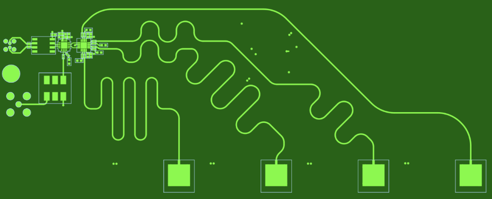 La synchronisation de ses signaux étant également un point clé, il faut donc prendre en compte la propagation du signal dans les pistes qui distribuent les signaux vers les connecteurs en s'assurant qu’elles soient de la même longueur, pour atteindre une précision de l’ordre de la période d’échantillonnage. Pour cela je route les signaux et mesure la piste la plus longue, ensuite j'utilise une fonction du logiciel eCADstar pour rallonger les autres pistes afin de faire correspondre les longueurs comme le montre la figure 18 ci-dessous :