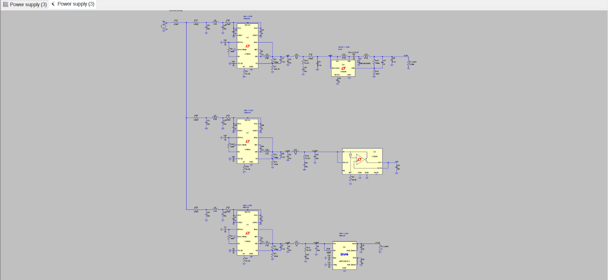 Ma première mission durant ses trois mois de stage est de concevoir la partie alimentation de la carte DGCTR afin de fournir les tensions nécessaires au bon fonctionnement de la carte. L’objectif est de générer plusieurs niveaux de tensions, 8.5V, -3.8V, 6.5V, 5V, 3.8V et 3.3V (PLL) à partir d’une tension d’alimentation de +24V en entrée.