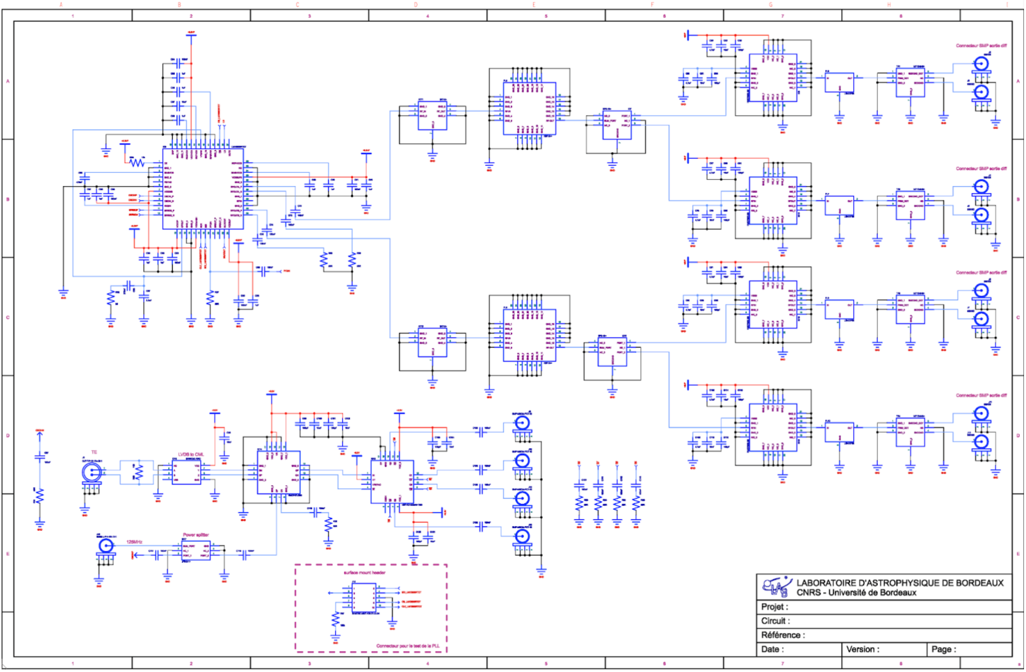 Ma seconde mission est de réaliser le schéma de la partie haute fréquence comportant plusieurs composants sensibles comme une PLL, des filtres passe-bas et passe-bandes ainsi que des amplificateurs haute fréquence pouvant monter jusqu’à 20GHz imposant ainsi des contraintes de design.