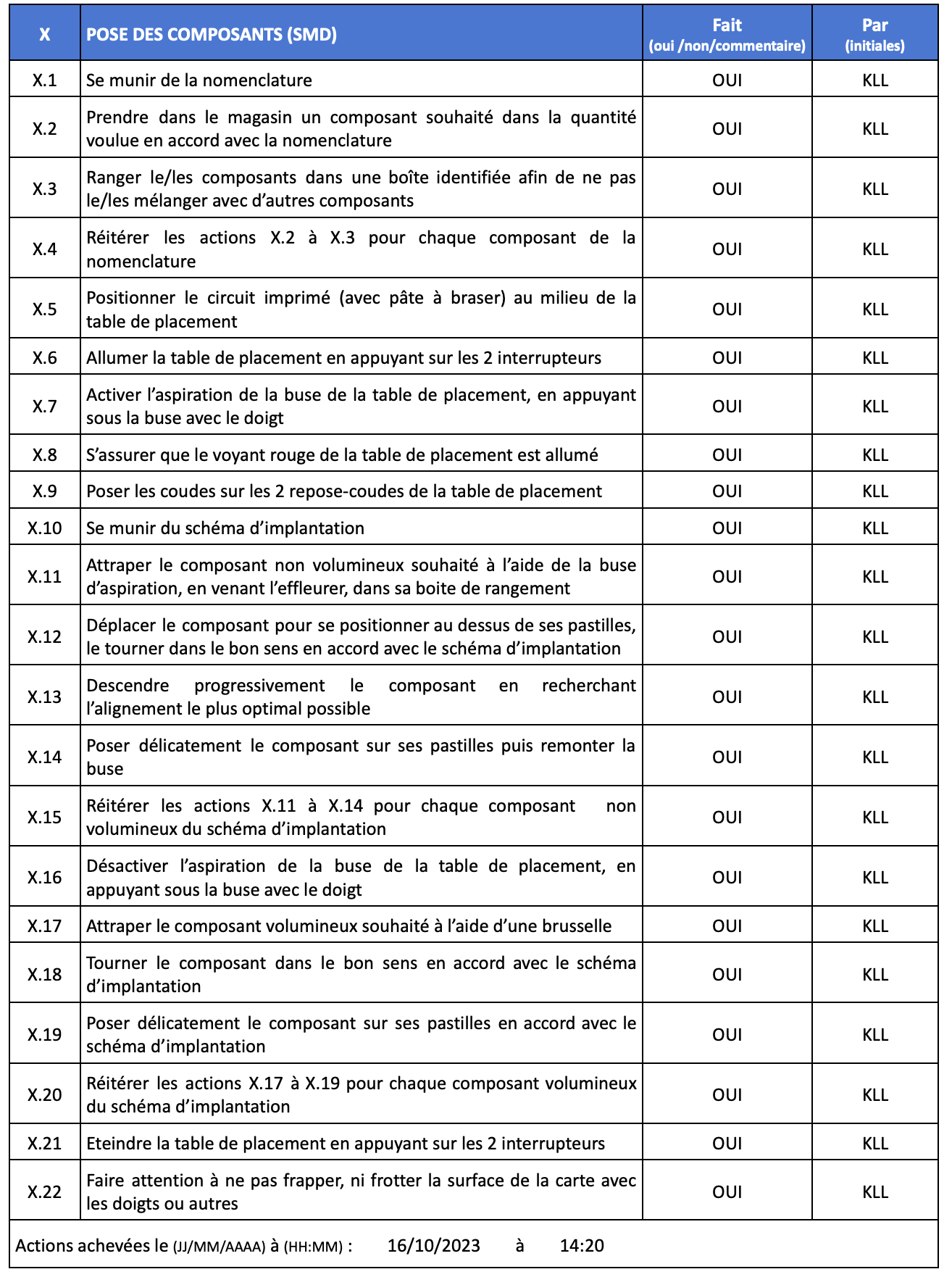 La liste de contrôle des règles de fabrication est un document rédigé lors de la fabrication afin de s'assurer que les règles de fabrications ont bien été respectées
