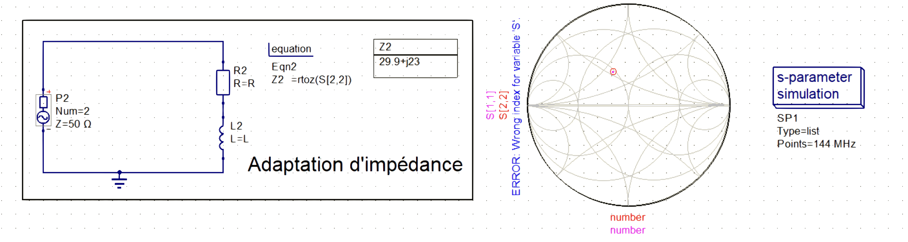 Nous avons ensuite rajouté une bobine en série pour se rapprocher du cercle d'admittance qui nous permettra d’atteindre le centre de l’abaque (qui correspond à l’adaptation d’impédance).