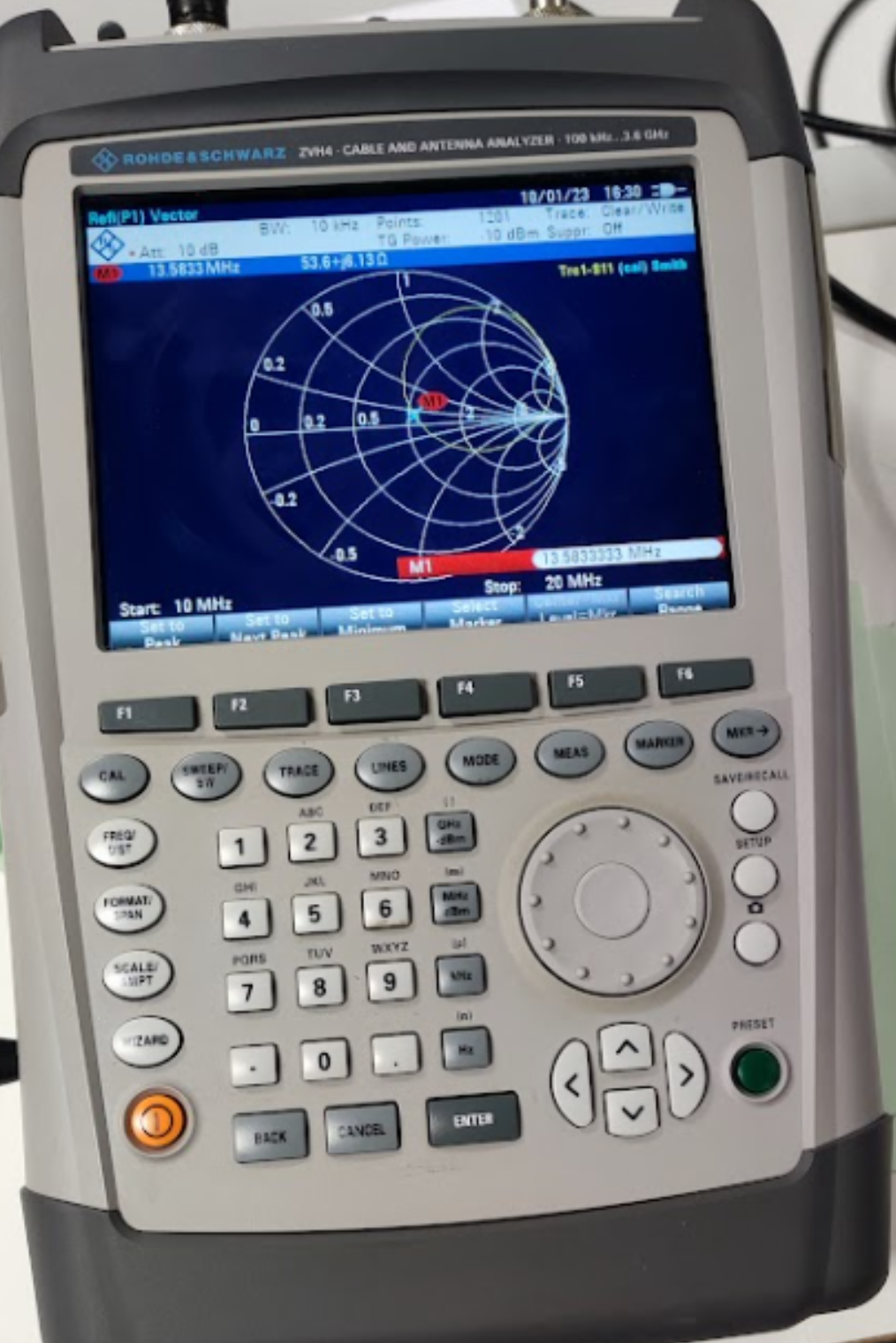 Nous avons utilisé un “cable antenna analyser” pour faire apparaître l’abaque de smith et pouvoir diriger le plus de puissance à la fréquence 13.6MHz.