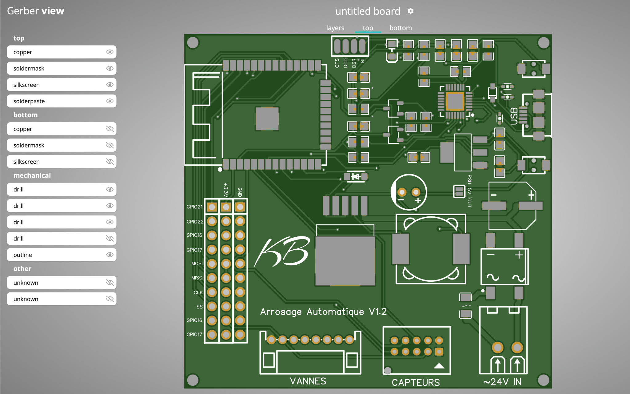 Fichier Gerber afin de fabriquer une carte électronique. L'objectif de ce document est de communiquer les plans de fabrication d'une carte elecronique que les machines du fournisseur puissent interpréter afin de la réaliser.