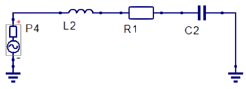 Nous pouvons donc relever l'ensemble des points mesurée par le VNA dans un fichier en .csv que nous pouvons exploiter dans Qucs. La simulation sous qucs nous permets de reproduire les réusltats affichés par le VNA et de carractériser les ocmposants mesuré, dans ce cas il s'agit d'un condensateur THD dont le scéma équivalent est représenté en figure 6 ci-desous.