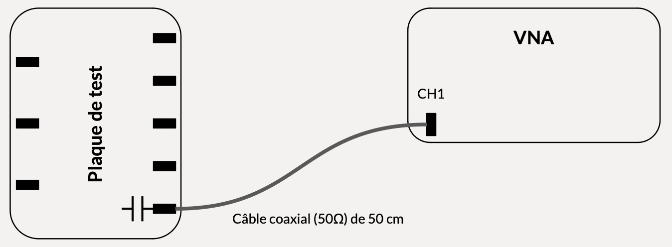 Afin de carractériser le condensateur, nous branchons le condensateur au VNA à l'aide du câble coaxial comme le montre la figure 5 ci-dessous.