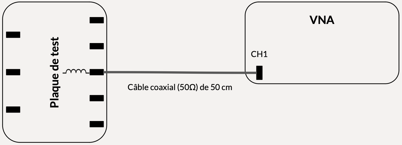 Afin de caractériser l'inductance nous appliquons la même démarche que pour les condensateurs mais cette fois-ci, nous branchons le condensateur CMS au VNA à l'aide du câble coaxial comme le montre la figure 16 ci-dessous.
