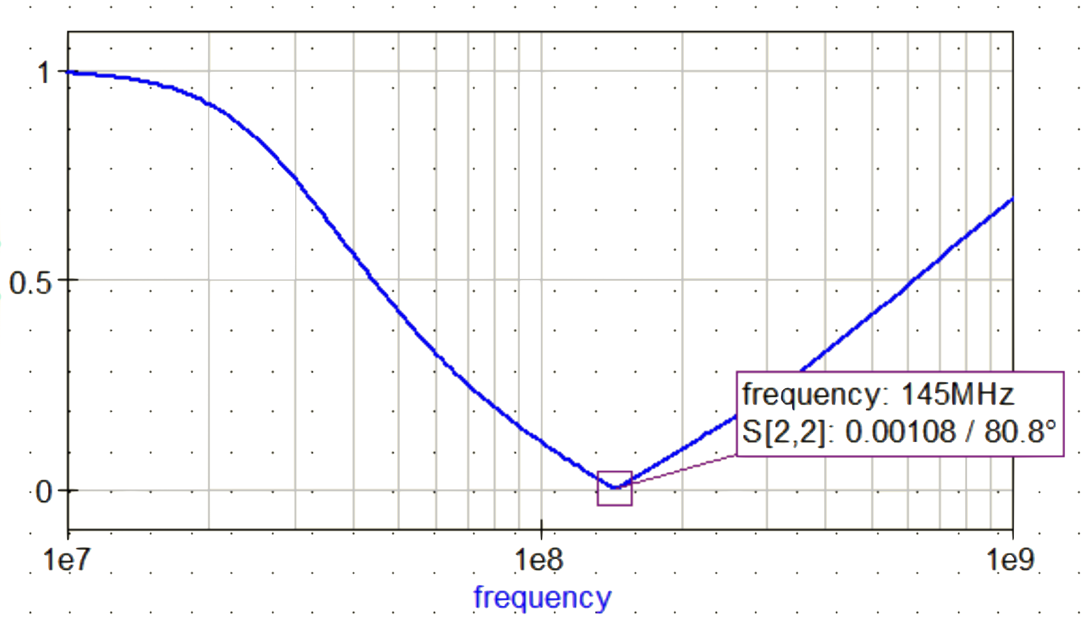Nous vérifions par simulation que l’antenne résonne bien à 144MHz (EXIG_Frequence). On peut donc voir ci-dessous que la fréquence de résonance respecte bien cette exigence.
